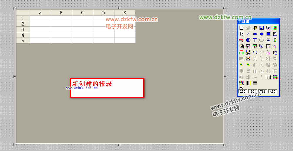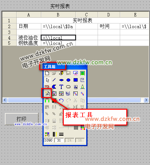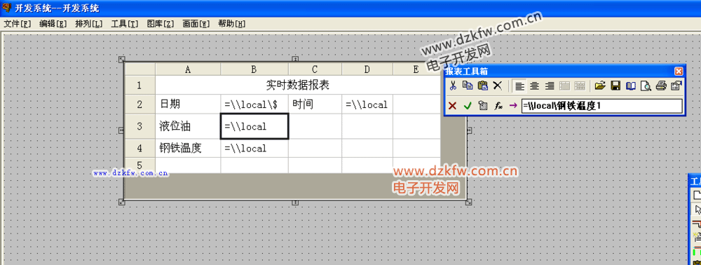 打开软件后,新建好一个画面后。找到工具箱里面的报表工具,点击报表工具图标,在空画里创建新的报表。