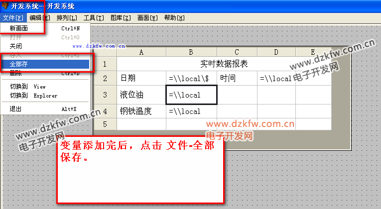 按照需要添加完名称和变量后,点击文件-全部保存,保存做好的项目。连上相应的设备即可在线实时显示当前的时实数据。