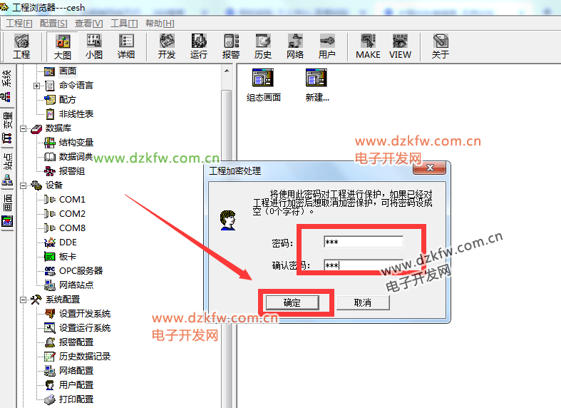 然后在弹出的工程加密处理对话框中输入加密工程的密码并点击【确定】
