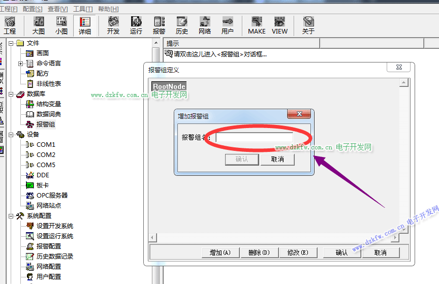在弹出的增加报警组窗口中输入【报警组名】并点击确定