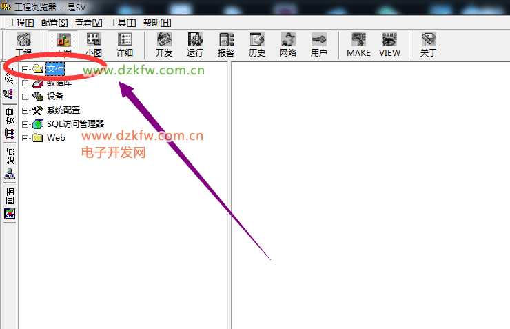 打开组态王编程软件,进入新建的组态王工程,选择工程浏览器左侧大纲项“文件”,