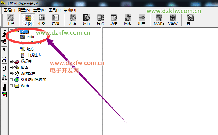在“文件” 下拉菜单中选择【画面】并点击打开,进入工程浏览器。