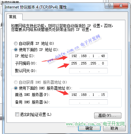 以下设置电脑端的IP地址