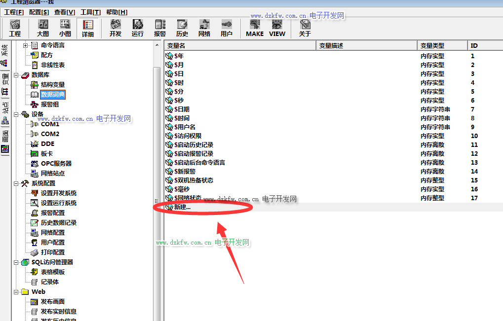 在数据词典窗口变量名中选择【新建...】并点击打开