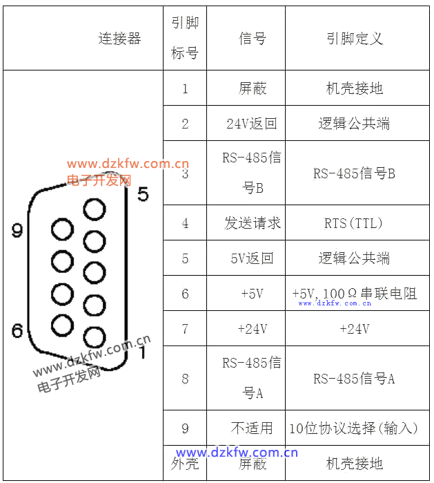 另外,关于EM DP01通信端口,其上的RS485串行通信接口为RS485兼容的九针迷你D型接口,符合欧洲标准EN 50170规定的PROFIBUS标准。引脚配置请参照相关图示。