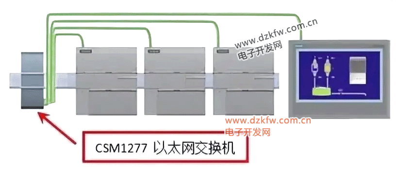 网络连接则适用于两个以上设备之间的通信,此时需要使用交换机进行连接。比如,可以使用西门子CSM1277 4端口交换机来连接多个CPU和HMI设备。