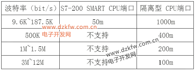 RS485网络的传输距离和波特率受到多个因素影响,包括电缆是否隔离以及通信波特率大小等。S7-200 SMART CPU集成的RS485端口及SB CM01信号板均为非隔离型,最大通信距离为50m。若通信节点数超过32个或通信距离超过50m,需使用RS485中继器来扩展网络连接。