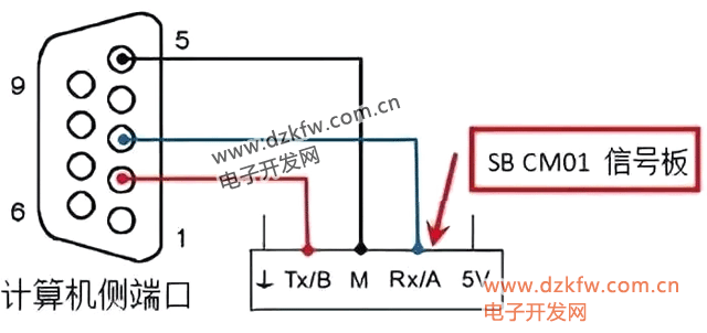 RS232网络支持两台设备之间的点对点连接,其最大通信距离可达15米,通信速率最高为115.2 Kbit/s。这种连接方式适用于连接扫描仪、打印机、调制解调器等设备。SB CM01信号板经过配置,可作为RS232通信端口使用,典型的RS232接线方式如图所示。