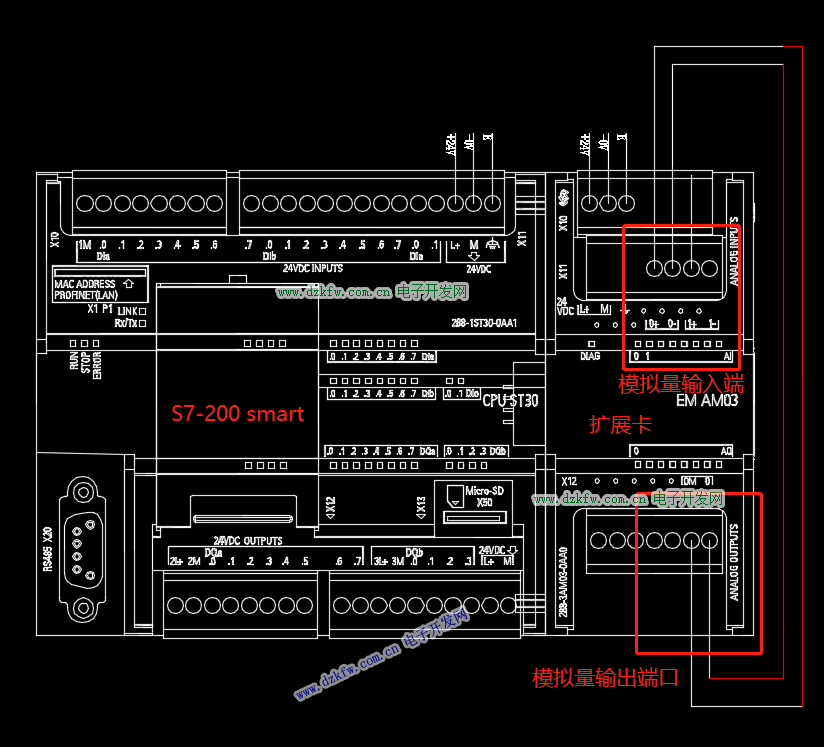 西门子S7-200 smart配备了模拟量扩展功能。添加AM03\AM06等模拟量扩展卡,将赋予PLC读取外部模拟量的功能。本文会结合博主实战经历,重点介绍AM03模拟量扩展卡接线、外部模拟量读取以及将读到的模拟量进行数据计算。希望给大家提供帮助。