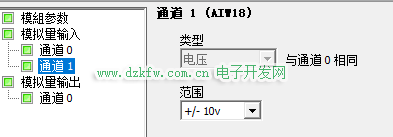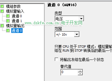在EM0(扩展)选择AM03。下面还有一些设置,例如:模拟量输入的通道0,后面跟着的就是这个模拟量端口的地址AIW16。切换到通道1可知端口地址十AIW18。切换到模拟量输出通道0可知该端口地址位AQW16.