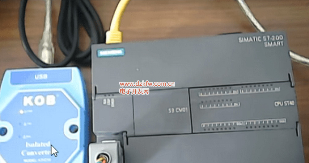 在此例中,PLC是做为Modbus的主站,流量计做为从站。PLC来读写流量计中的数据。本例网口是用于上传和下载程序,PLC自带的RS485口用其3,8芯做Modbus 串口通讯。连接如下图所示。
