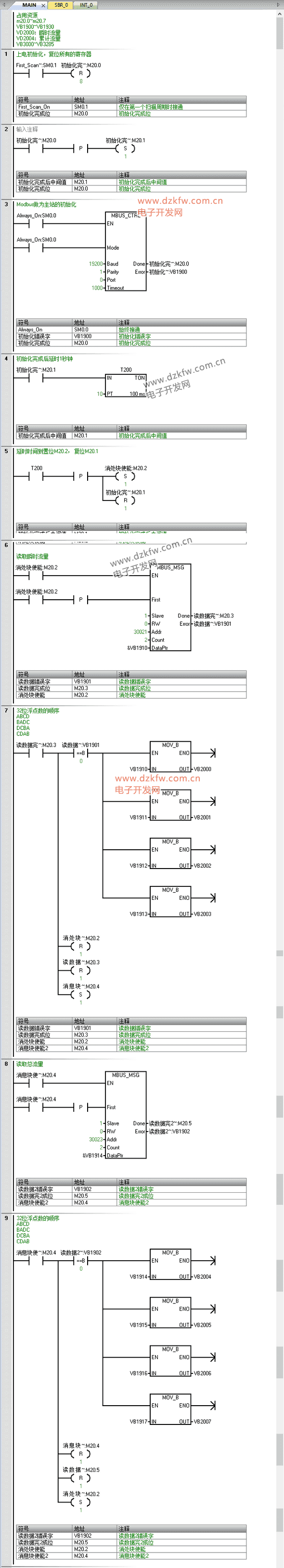 流量计RS485通讯地址表。通过地址表可以看出,PLC要读取的数是瞬时流量【30021,16进制的14就是20,再加上起始地址30001】;另一个总流量【30023,16进制的16就是22,再加上起始地址30001】