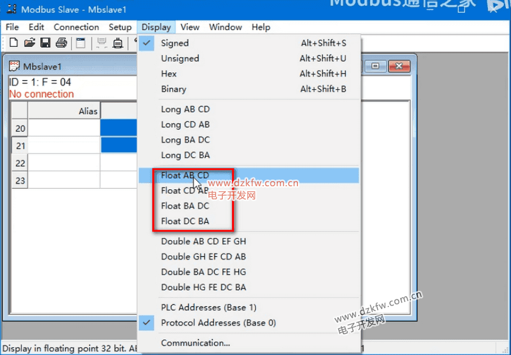下面用Modbus Slave来模拟流量计,功能码是04,3x区的寄存器。从20地址也就是16H;