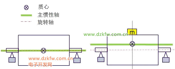 静不平衡:当主惯性轴与旋转轴心平行时,质心矩不为零,也就是说重心没有位于中心点上。简单来说,静不平衡意味着转子的重量分布不均匀,导致转子在旋转时产生不平衡力。
