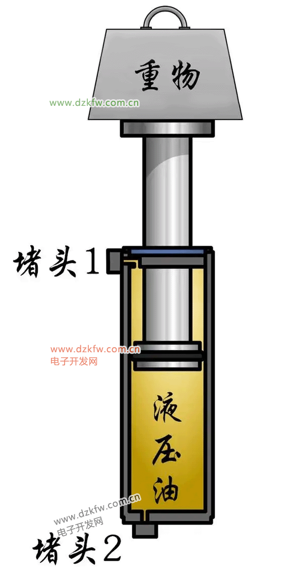 举一个极端的例子,如果我把液压缸的两个油口都堵起来,在这种情况下,即使活塞杆上放上一块很重的物体(当然重物所施加的压力肯定在液压缸的承压范围之内),活塞也是无法向下移动的。