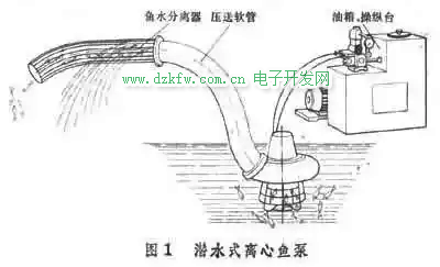 美国于1929年首先在一家沙丁鱼工厂试用了离心鱼泵。苏联于1935年设计制造了射流鱼泵。上世纪50年代,苏联还应用鱼泵配以灯光诱捕里海棱鲱,在世界上首次实现了无网捕鱼。中国在上世纪60年代初研制了离心鱼泵,后又制成潜水式离心鱼泵(图 1)。