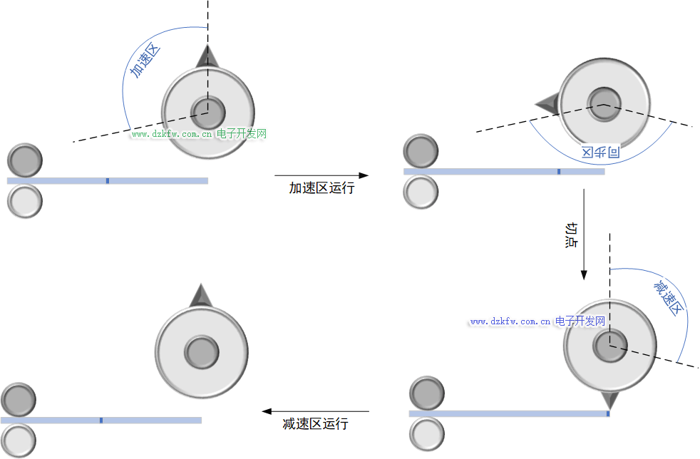 减速区:飞剪轴以加速度不为0的速度运行;