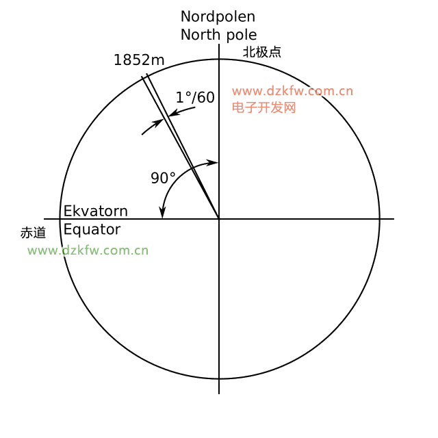 事实上,人们定义一度等于60分,也就是说,一海里对应绕过地球南北极的这个大圆圈的一分。