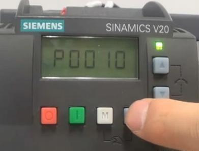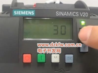 2、按向上键,找到P0010,按“OK”键,再按向上键,将P0010设置为30,再“OK”键确认。