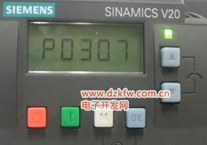 P0304,电机客户电压。P0305,电机额定电流。P0307,电机额定功率。P0308,电机额定功率因数。P0309,电机额定效率。P0310,电机额定频率。P0311,电机额定转速。