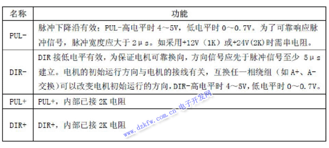 DIR+:步进方向信号输入正端或反向步进脉冲信号输入正端