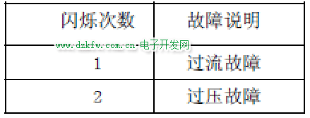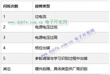 故障类型对应的闪烁次数如下表: