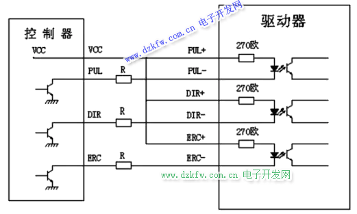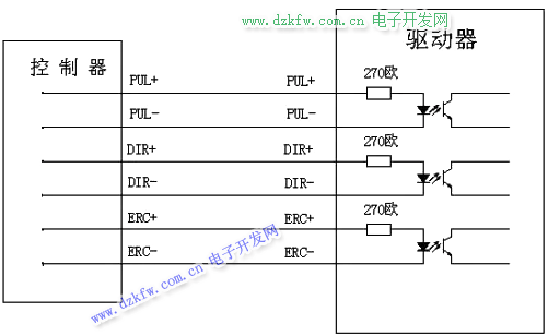 2.控制信号采用差分接线方式时,接线图如下图所示: