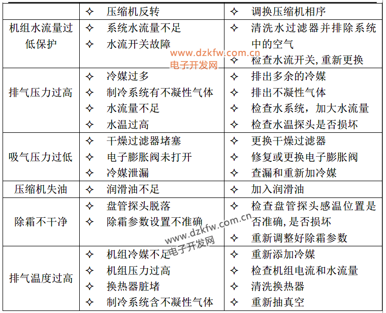 | 冷水电磁阀坏 | 线圈烧坏 | 更换线圈 | |